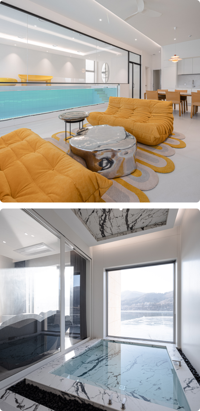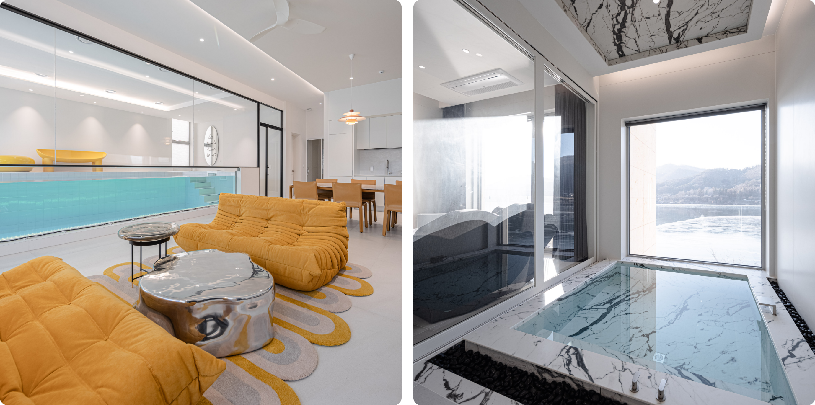 객실 내에 개별 수영장 또는 자쿠지를 갖추어 프라이빗한 공간에서
