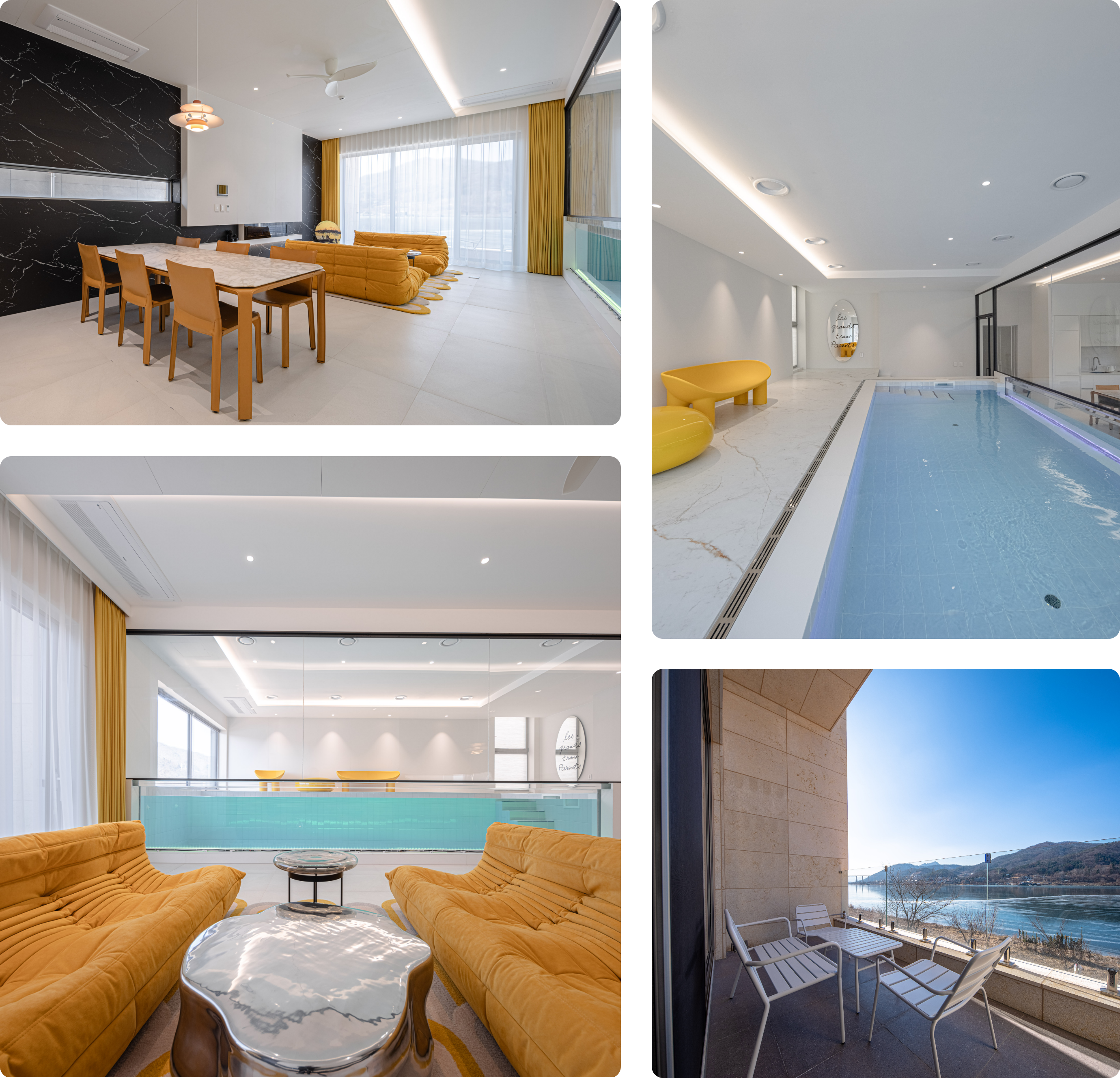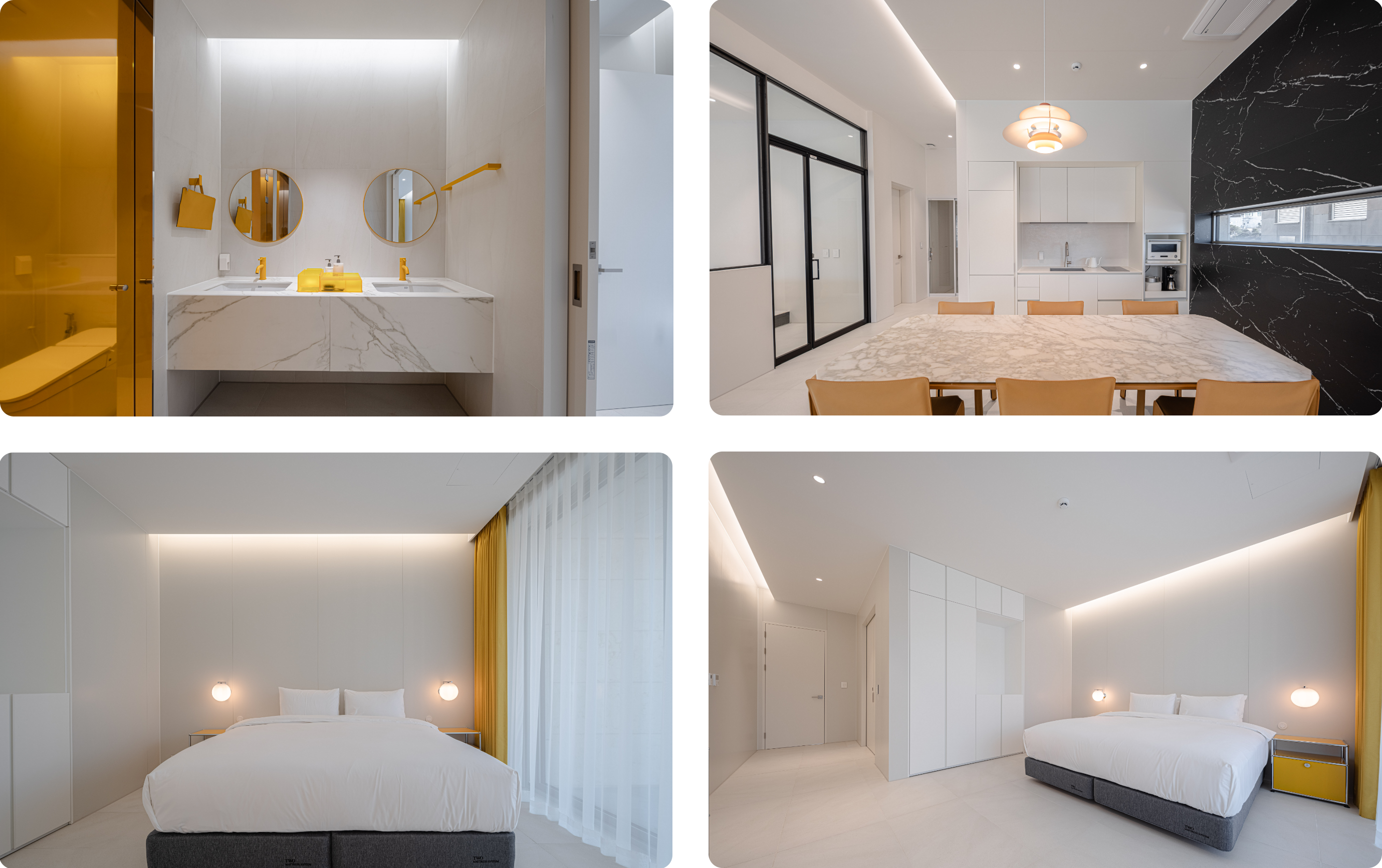 카시나(Cassina)의 대리석 테이블과 톤 다운된 옐로 가죽 체어의 호사스러운 콤비네이션도 누릴 수 있습니다.