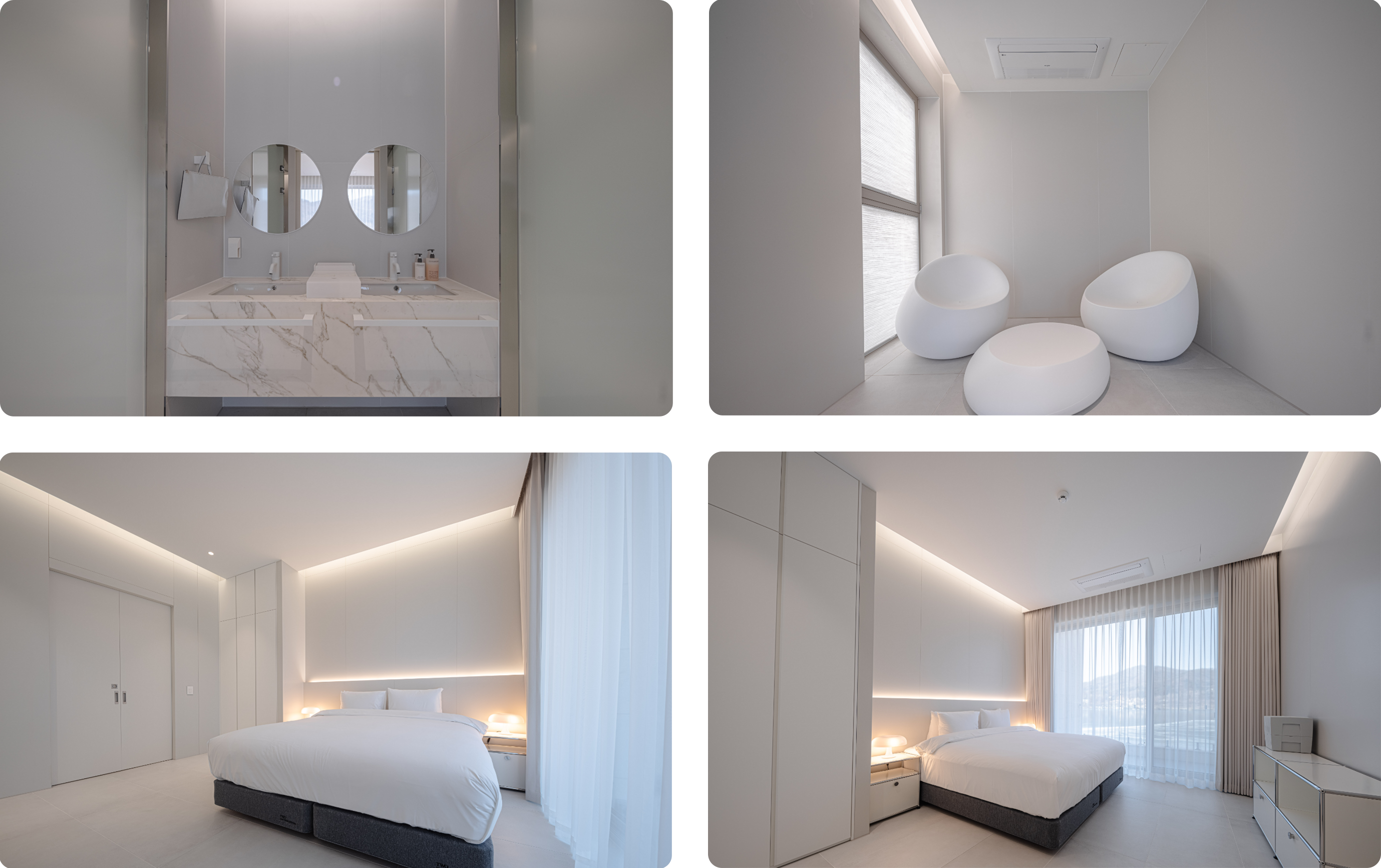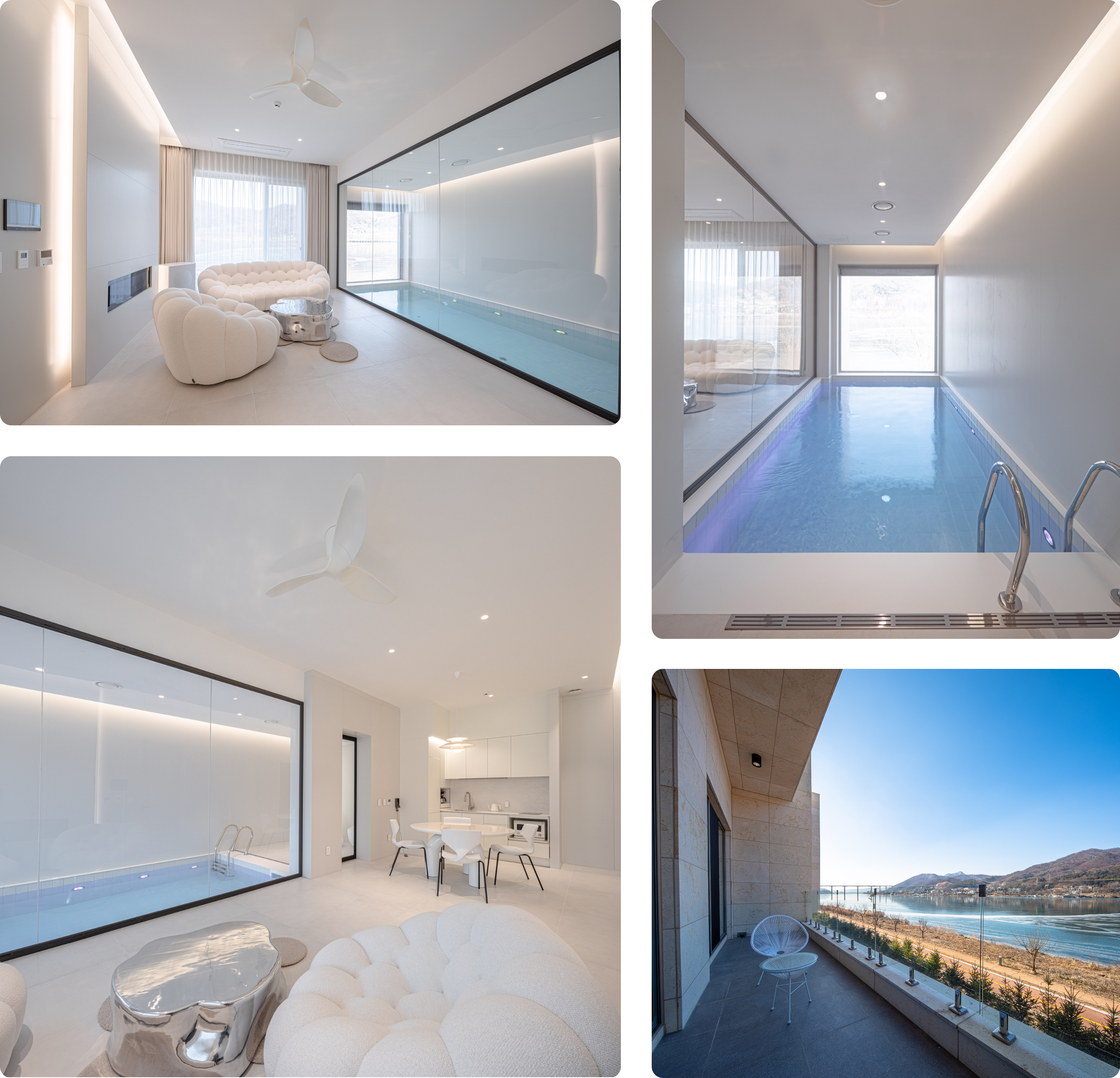 다른 컬러의 개입없이 탁 트인 북한강 변의 빛과 그림자를 감상할 수 있는 최적의 객실입니다.